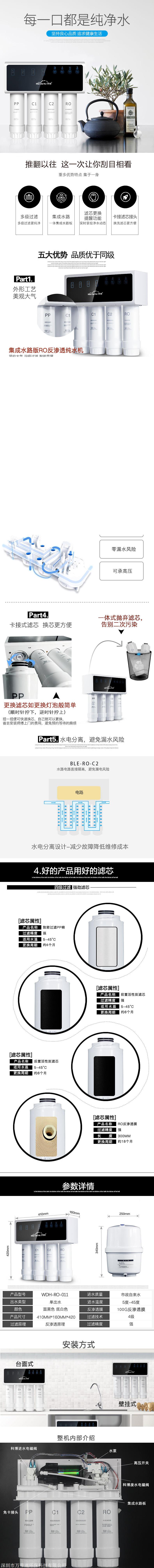 ①卡接PP棉 ②卡接颗粒炭 ③卡接RO膜滤芯④卡联接进口的后置碳滤网